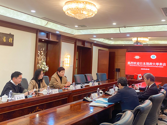 3月4日下午,日本别府大学理事长二宫滋夫、国际经营系教授姚宇龙、学生事务部部长兼留学生科科长村上健一行莅临我校访问交流。我校副校长谢敏热情接待了来访嘉宾。国际交流处处长李爱群、外国语言文化学院日语系副主任秦冉阳、国际交流处干事兰启慧陪同参加此次交流活动。