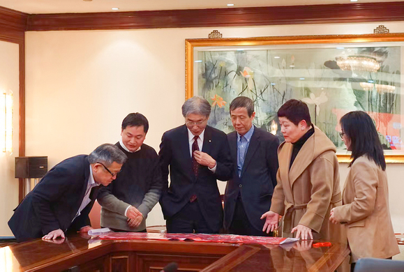 随后,双方互赠礼物。我校赠送的艺术设计与传媒学院学生郭杨一梦的刻纸作品,赢得了别府大学来宾的高度赞赏与喜爱。座谈结束后,双方共同合影留念。