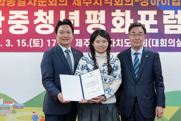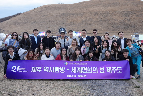 在为期三天的活动中,纪念营精心组织赴济州议会、济州大学、和平纪念馆以及新星火山遗址等重要历史文化纪念地的参观活动。系列参访活动不仅让学生对济州岛的历史地理有了更加直观的了解,也让他们对济州岛的独特文化有了更加深刻的认识。活动期间,中韩青年和平论坛成为一大亮点。两国青年代表在论坛上作主旨发言,通过深入的交流和讨论,增进了相互之间的理解和友谊。双方表示,未来将努力为推动中韩友好关系的发展作出贡献。