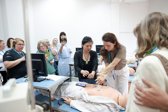 见面会后,在两校领导陪同下,代表团进行了实地参观,思博学院图书馆、护理学院实训中心、工学院中建八局实训基地,以及我校外语情境实训中心等,都给代表团留下深刻印象。俄语系师生凭借扎实的俄语功底和热情周到的服务,为参观活动提供翻译支持,双方交流融洽。参观结束后,代表团合影留念。