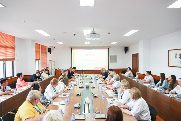 随后,我校姚秀平校长介绍了两校情况,包括办学理念、专业设置及国际交流成果等。他强调,此次交流恰逢国家主席习近平对俄进行国事访问并出席纪念苏联伟大卫国战争胜利80周年庆典之后,具有特殊意义。他还援引了5月9日中俄联合声明,进一步彰显双方深化教育合作的信心。