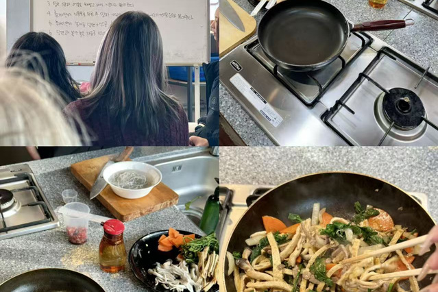 学习不止于课堂。学校为我们安排了丰富多元的文化体验活动。我们走进韩式料理教室,在老师的逐步示范下,亲手制作了韩国特色菜—杂菜,并品尝了自己的劳动成果。我们也体验了试穿精美韩服的乐趣,感受传统服饰的魅力。
