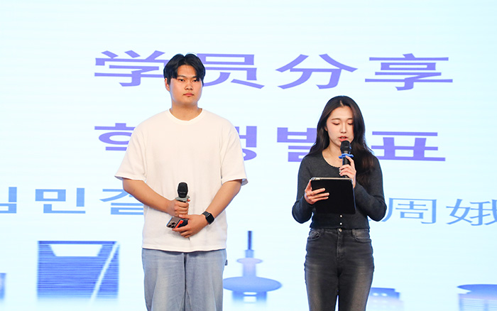 仪式上,谢敏副校长代表学校向对方赠送象征两校友谊的纪念礼品;为深化合作、助力人才培养,我校正式聘请金钟贤院长为客座教授,谢敏副校长现场颁发聘书。韩国东亚大学学生代表金敃杰(김민걸)、吳周娥(오주아)分享研学感悟,真挚话语里满含收获的喜悦与对跨国情谊的珍视。与会领导为全体营员颁发结业证书及伴手礼,见证大家的成长与蜕变。