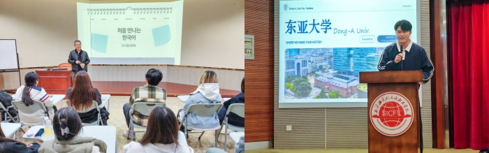 学术交流环节内容充实。金钟贤院长为我校韩语专业学子开展了两场高质量的学术分享。18日下午,金院长面向我校应用韩语(中高职贯通)2501班进行专业韩语专题授课,聚焦核心知识与实践应用,通过精准化教学指导,助力同学们夯实专业基础、提升语言运用能力。11月20日下午的专题报告中,东亚大学学子金敃杰(김민걸)首先从办学特色、学科优势、校园文化等方面详细介绍了东亚大学,为现场交流搭建深入了解的桥梁。随后金院长作《韩国现代社会文化》专题报告。内容深入浅出、详实生动,帮助学子们拓宽国际视野,深化对韩语学习与跨文化研究融合价值的理解。