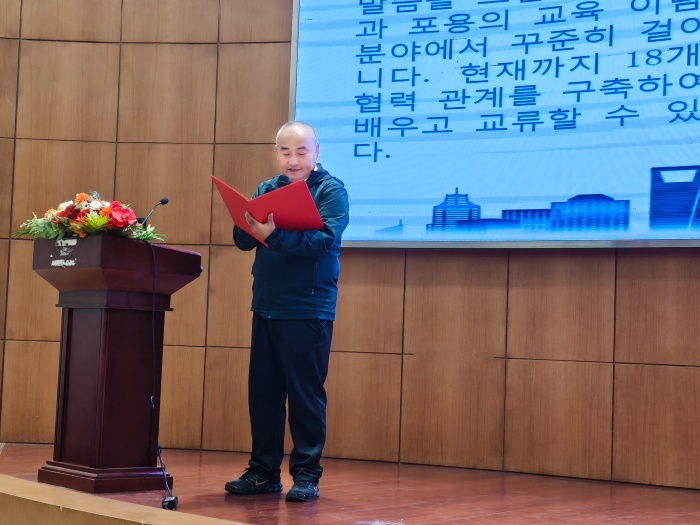韩国东亚大学金钟贤院长对我校的精心筹备表示感谢,鼓励韩国学子主动探索中国文化的深厚底蕴,在互动中增进彼此了解、搭建友谊桥梁,让跨文化友谊在交流中生根发芽、茁壮成长。