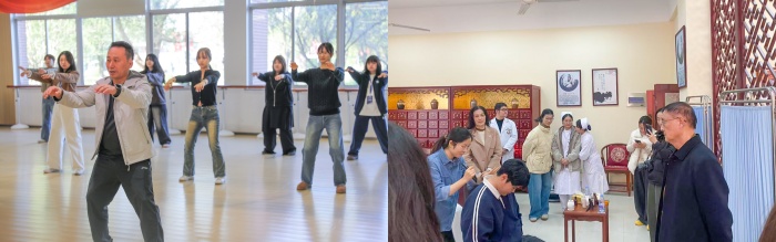 人文与教育学院的中文课堂上,韩国学子学说中文、学唱中文歌曲;艺术设计与传媒学院刘向阳副院长现场教授太极拳,一招一式展现中华武术的刚柔并济;护理学院的中医文化探秘活动,也让大家直观领略中华传统医学智慧。